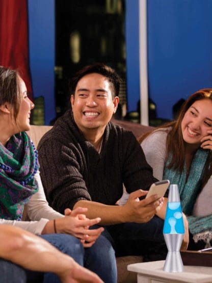 Watch the mesmerizing motion of different sized wax blobs as they collide, split apart and ooze their way up and around the glass globe of this peaceful LAVA® lamp. A hand-spun base and cap make this lamp truly unique. Enjoy the relaxing motion of this fun-sized version of the timeless LAVA® lamp.