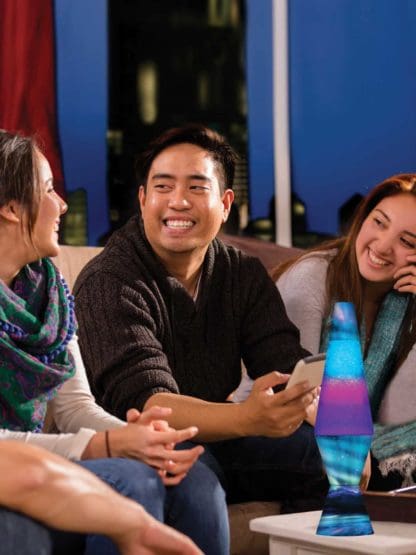 The Northern Lights LAVA® lamp allows you to enjoy one of the Seven Wonders of the World right at home! Colormax™ technology makes the glitter appear to change color as it flows up and down the hand-painted, tri-colored glass globe. The beautiful decal of a northern lights scene on the hand-spun base and cap of this lamp will create a relaxing environment. Watch the instant motion and enjoy this relaxing version of a timeless LAVA® lamp.